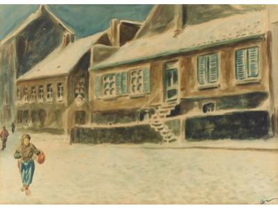 Het huis "De Preekstoel" te Oostende in de sneeuw